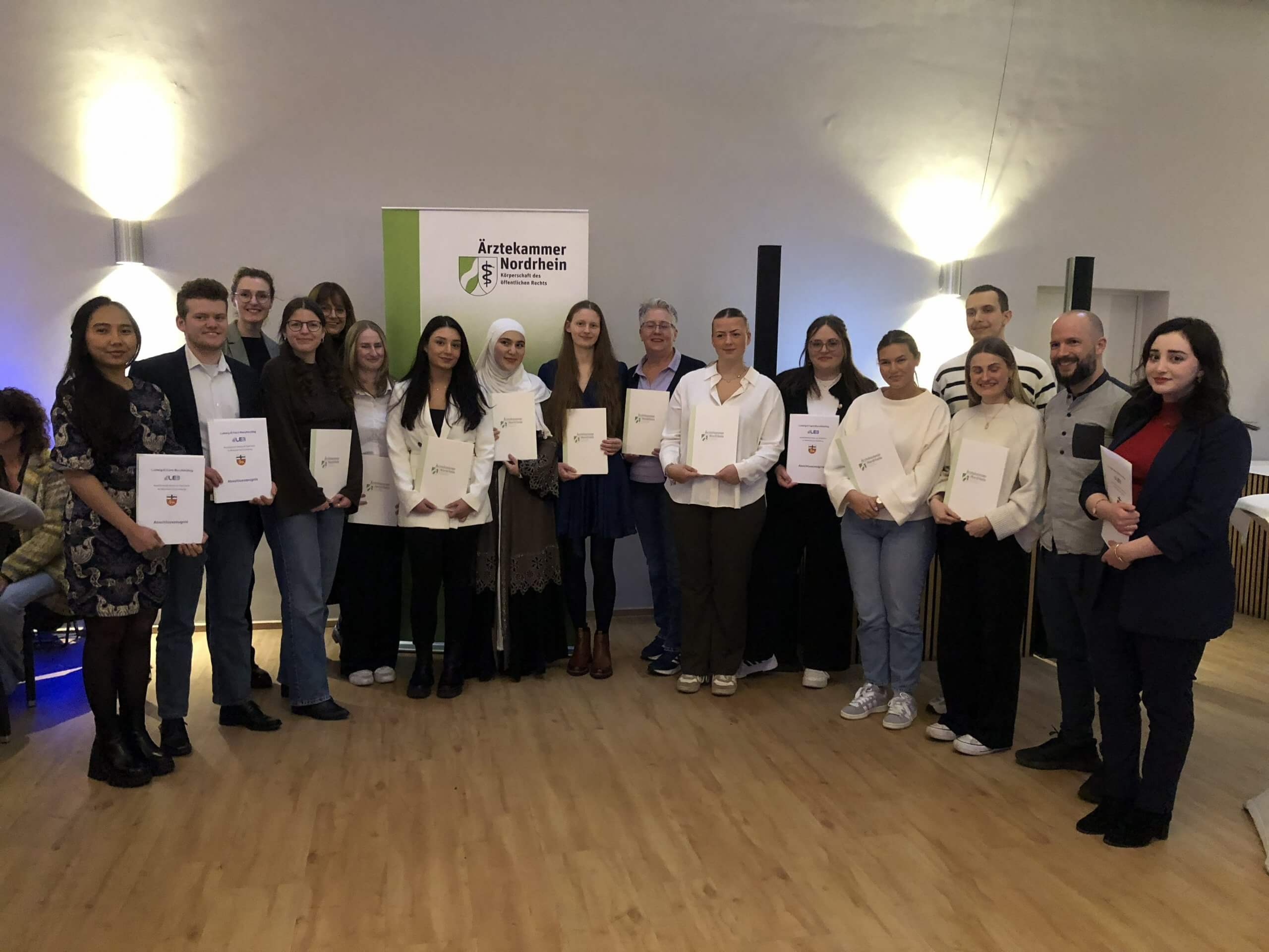 Gut ausgebildet für den Einsatz in der Arztpraxis haben in diesem Schuljahr am Ludwig-Erhard-Berufskolleg Bonn rund 100 junge Schülerinnen und Schüler ihre Ausbildung zur/m Medizinischen Fachangestellten erfolgreich beendet. Aufgrund der großen Anzahl der Auszubildenden fand die Lossprechungsfeier nun auch im Winterprüfungstermin erstmals im Schützenhof in Bonn statt.